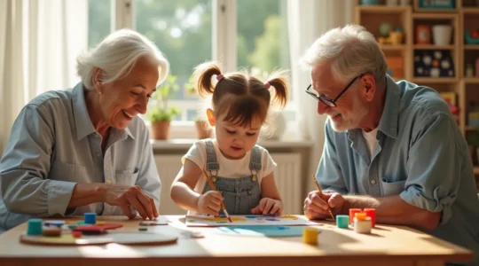 Inviter les grands-parents à participer à la création d’éléments décoratifs renforce les liens familiaux et charge les objets d’une valeur affective irremplaçable. Un coussin brodé par une grand-mère, une étagère fabriquée par un grand-père deviennent des repères identitaires pour l’enfant. Choisissez des projets adaptés aux capacités motrices des aînés : broderie, tricot, assemblage de cadres, peinture sur bois.